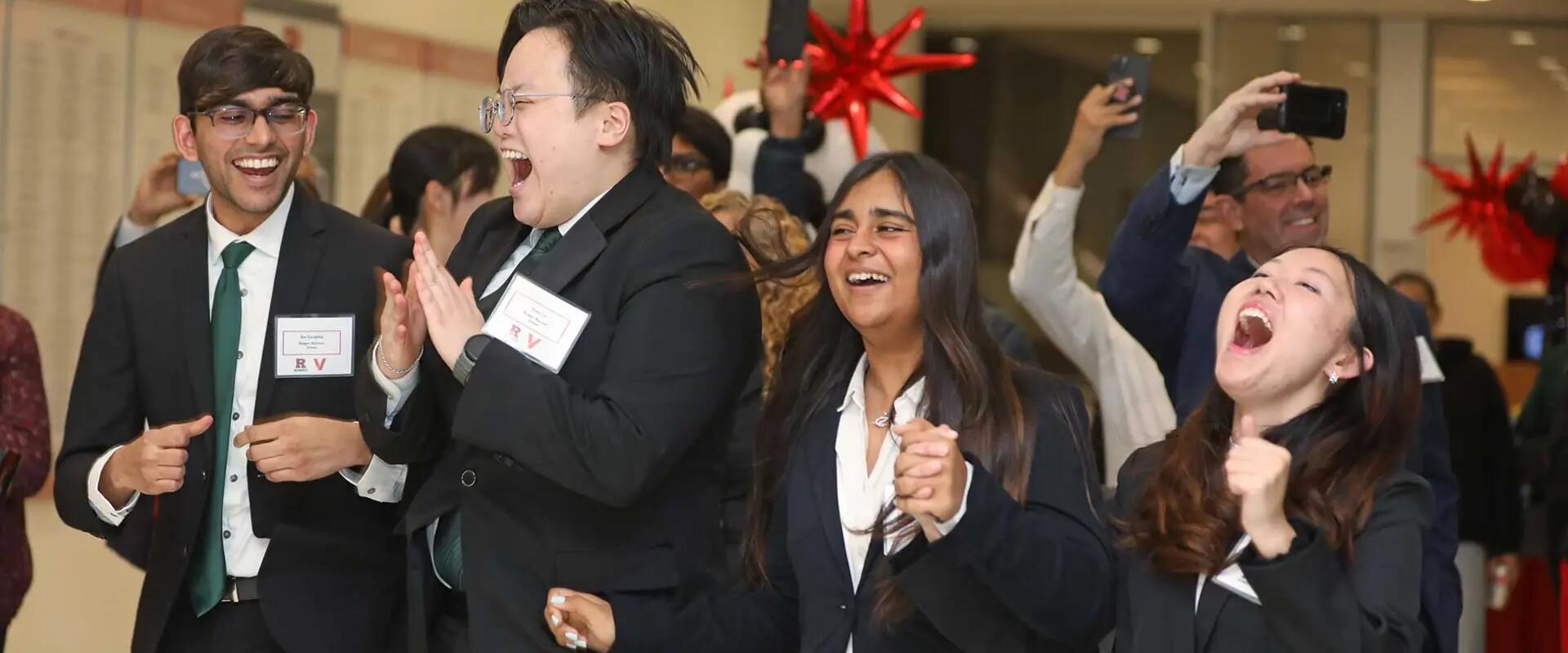 Members of Team Idea.exe react to news that they were one of three top winners in the Verizon x RBS Go-to-Market Competition..